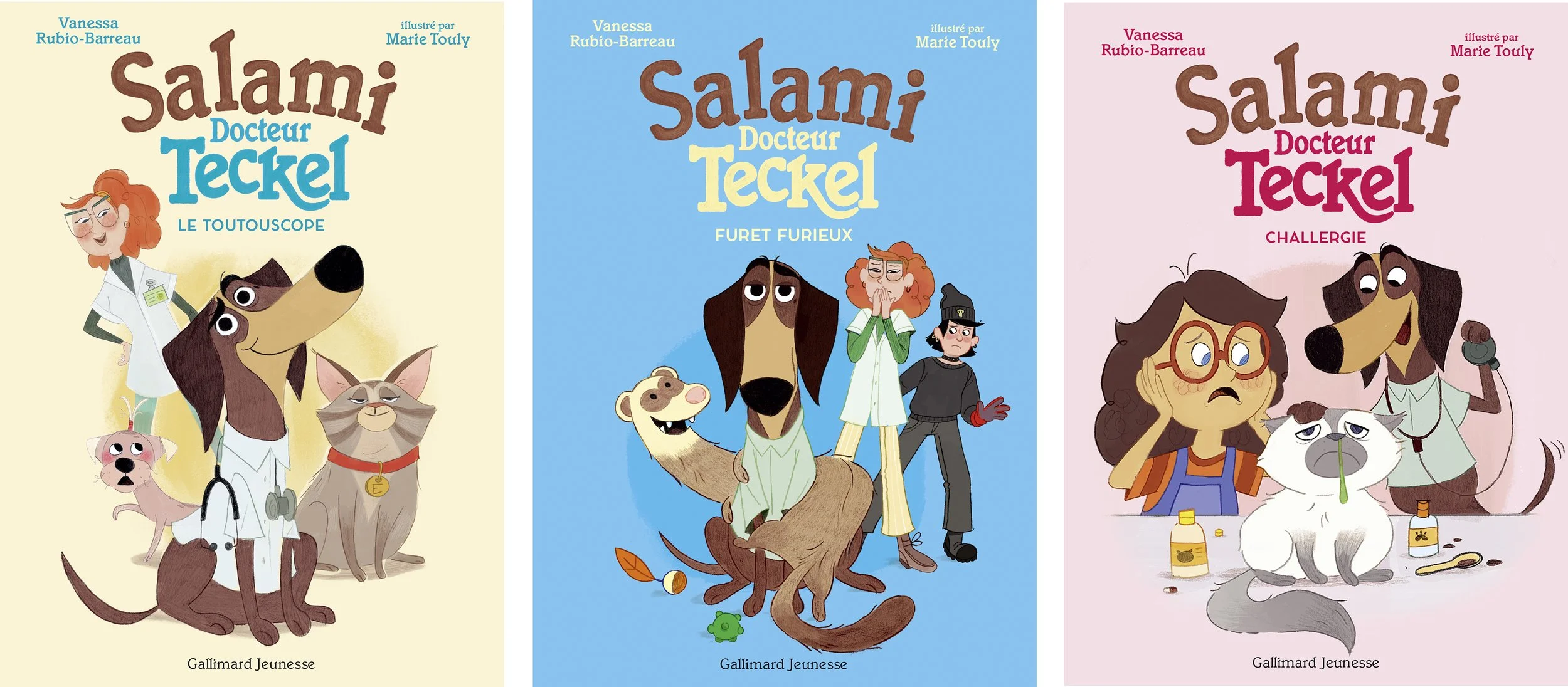 Chez Barbara Chery, la vétérinaire, il y a Lucie son assistante, Edgar l’énorme maine coon et Salami le teckel. Aujourd’hui, il fête son anniversaire, et sa surprise est de taille ! Barbara lui offre une tenue de parfait vétérinaire : une blouse et un toutouscope...